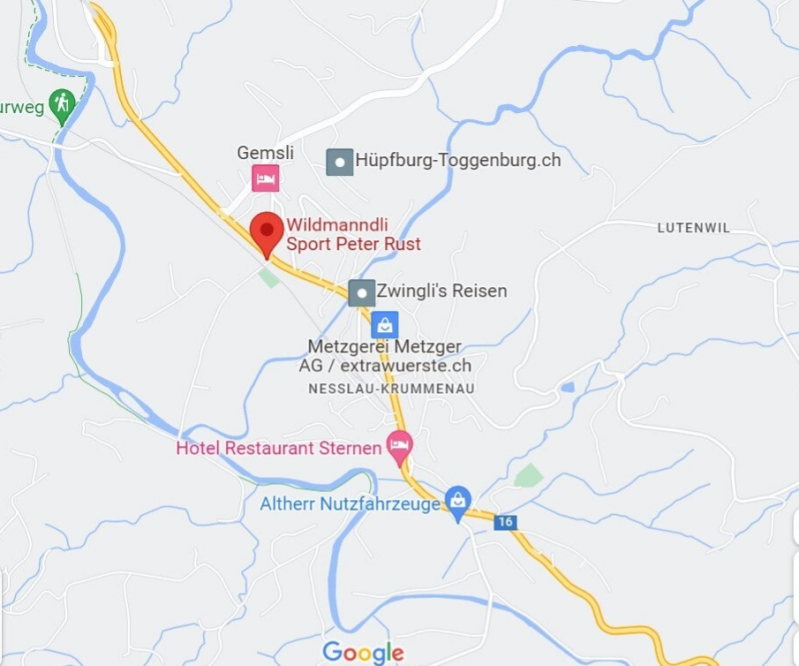 Sie finden mich direkt hinter dem Haus vom Wildmannli Sportgeschäft